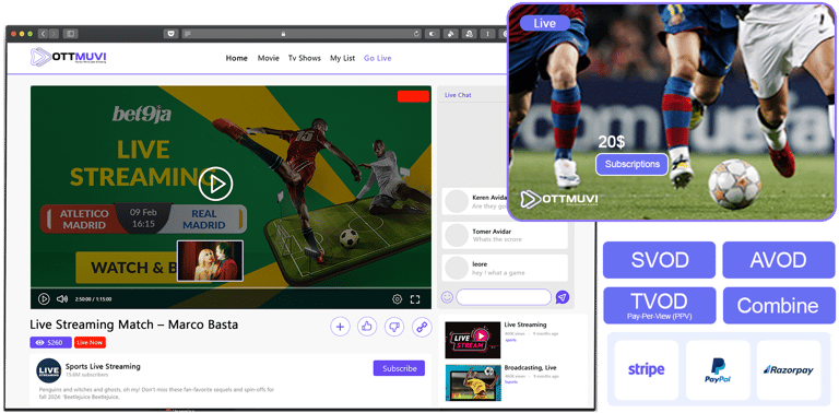 Monetization options include subscriptions, pay-per-view, and ad-supported streaming for maximum revenue.